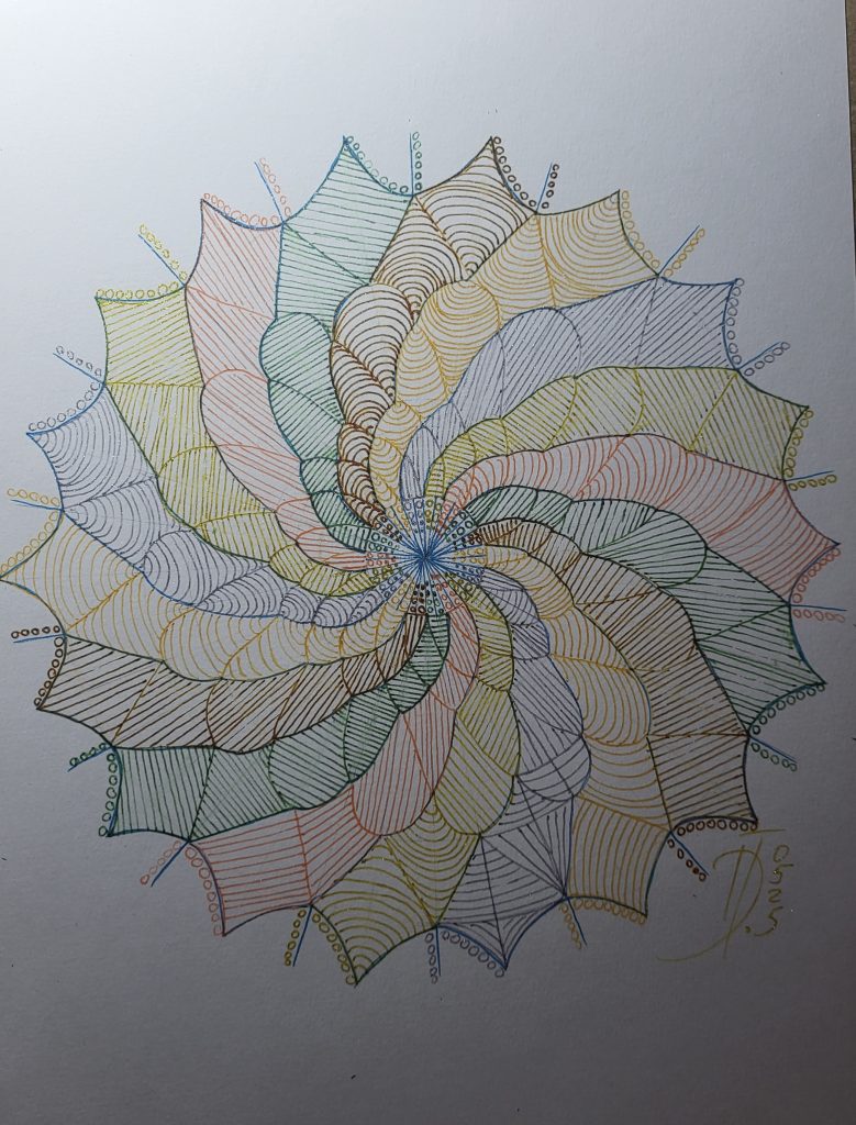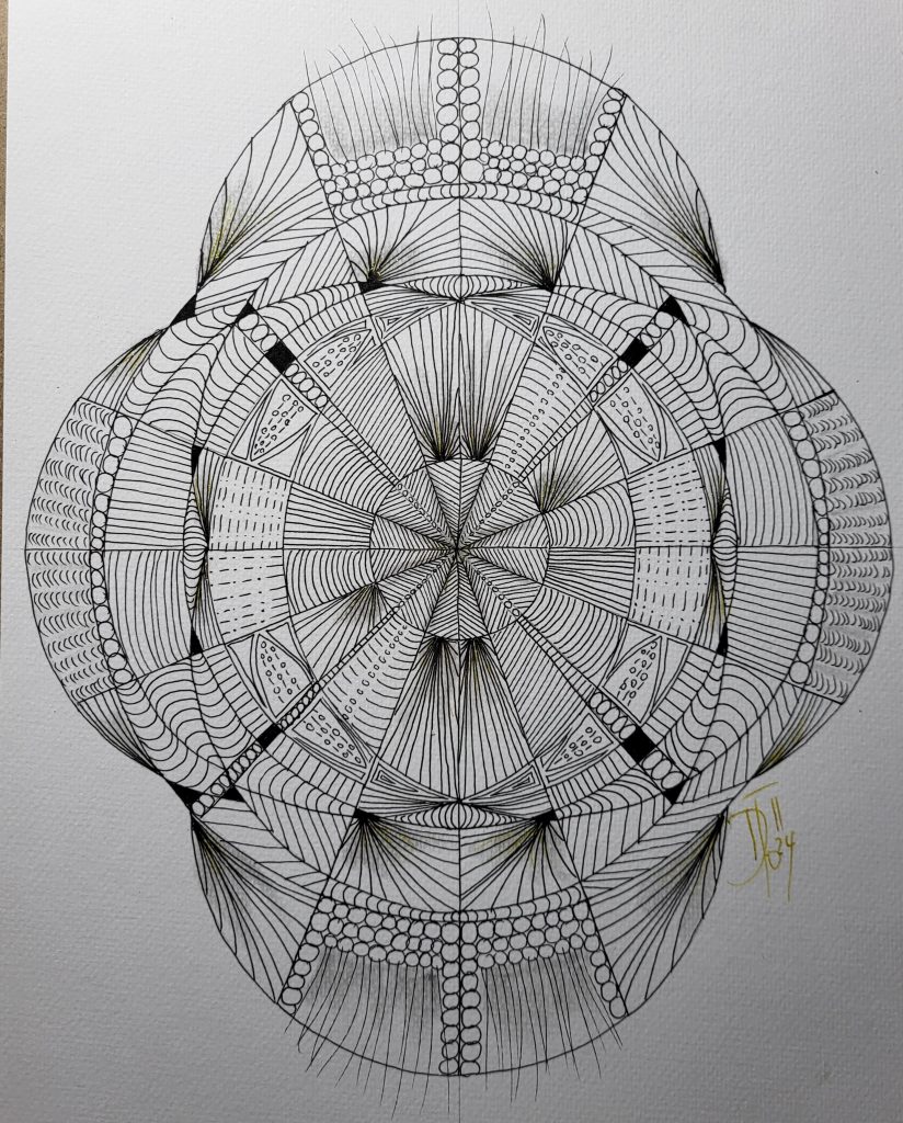 Vielleicht ist die „Heilige Geometrie“ deshalb nicht nur eine theoretische Idee. Beim Zeichnen wird sie auf eine ganz eigene Weise erfahrbar – wenn aus Linien, Formen und Proportionen langsam ein Bild entsteht und sich darin plötzlich eine stille Harmonie zeigt.