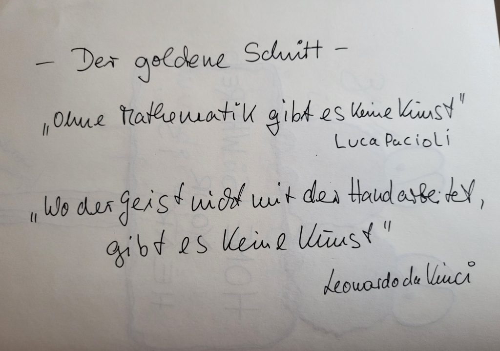 seit einiger Zeit beschäftigt mich das Thema „Goldener Schnitt“ und „Heilige Geometrie“. Was es damit auf sich hat und wie sich diese Ideen auf Kunst und Zeichnen auswirken, möchte ich hier ein wenig näher beleuchten.